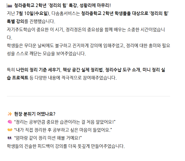 [청라중학교]2학년전교생 정리수납특강 |