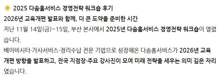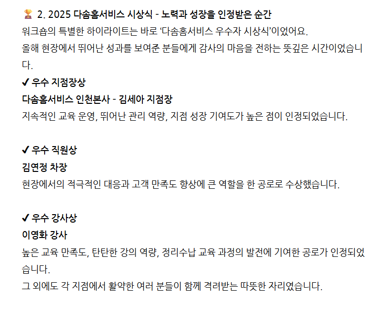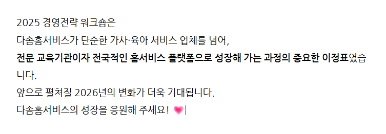 [다솜홈서비스] 2025년 후반기 경영전략 워크샵 개최!